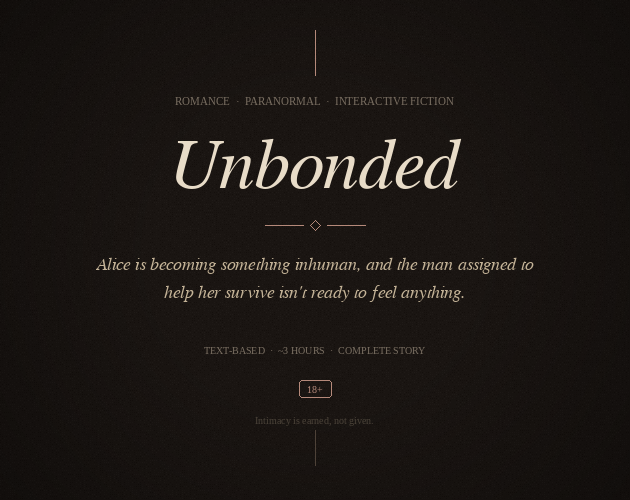 Unbonded is an interactive paranormal romance where intimacy is earned, not given.